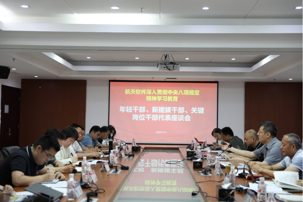 为扎实推进深入贯彻中央八项规定精神学习教育,抓好新提拔干部、年轻干部、关键岗位干部三类重点对象的学习研讨、问题查摆、整改整治和监督管理,6月3日,航天软件召开三类重点对象深入贯彻中央八项规定精神学习教育座谈会。